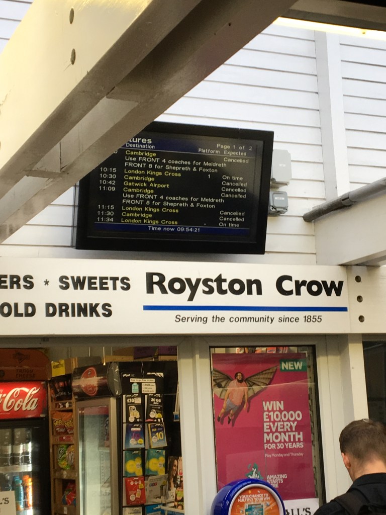 I’ve bought a running vest to carry water and a telephone. Light rain drizzles. Perfect weather. The plan was to take the 7:42 train from Royston to Baldock and run back. But all trains are cancelled. Instead I’ll run to Ashwell and Morden and back, double up on last week. The Gold Card will be useless this morning. I run past a conversation by the station between good-natured passengers and station staff talking about how the rolling stock is all in the wrong places and it will take long to get operations back on track.