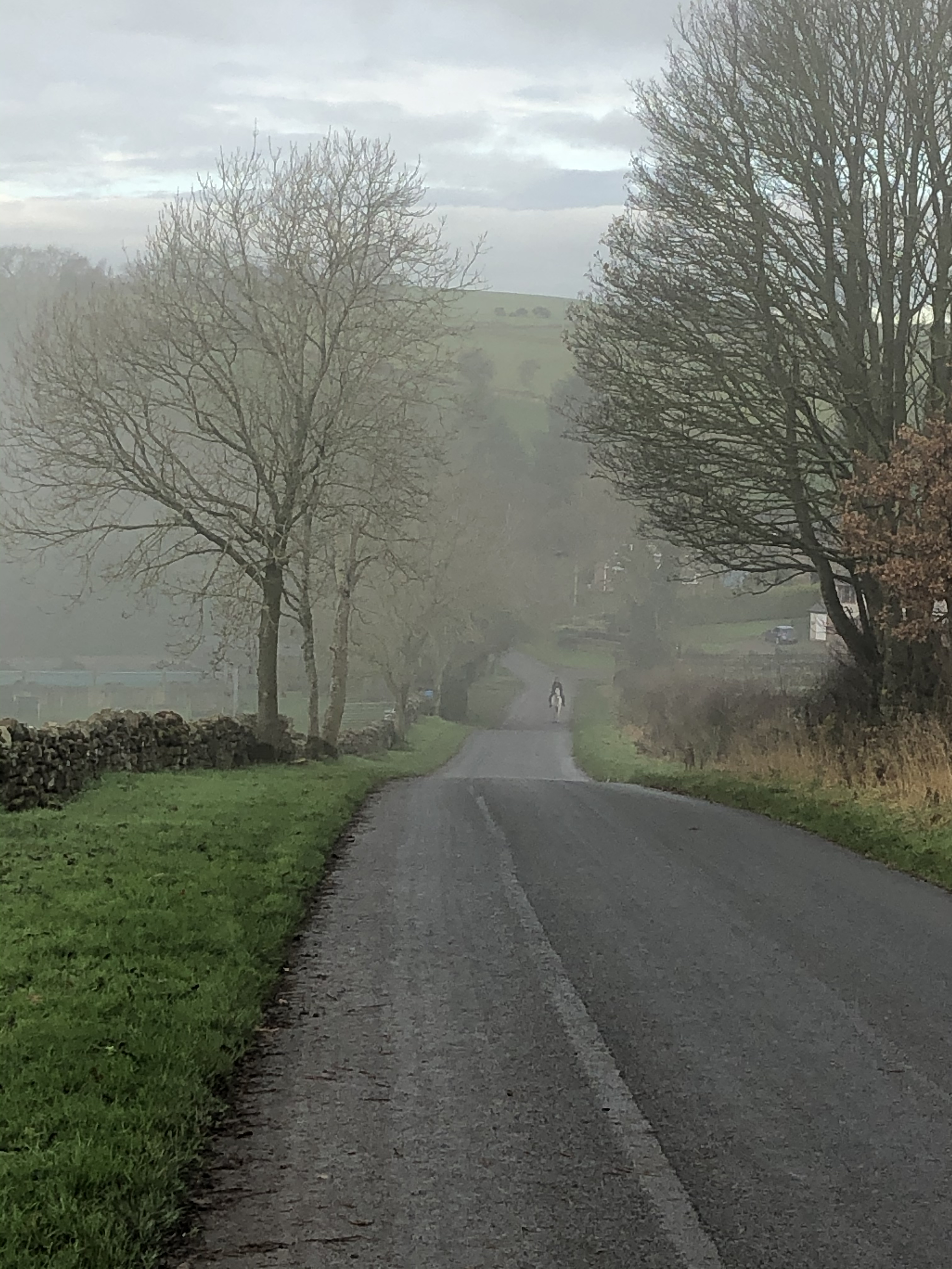 Two cabriolets come around the bend towards me. One of the drivers turns around to the other: “Follow me I’ll take you to Lazonby, it’s a good road.” A short while later the red car overtakes me, it must have turned around. Did they disagree on the quality of the roads and decide to split? Are they racing from a starting point equidistant to Lazonby?