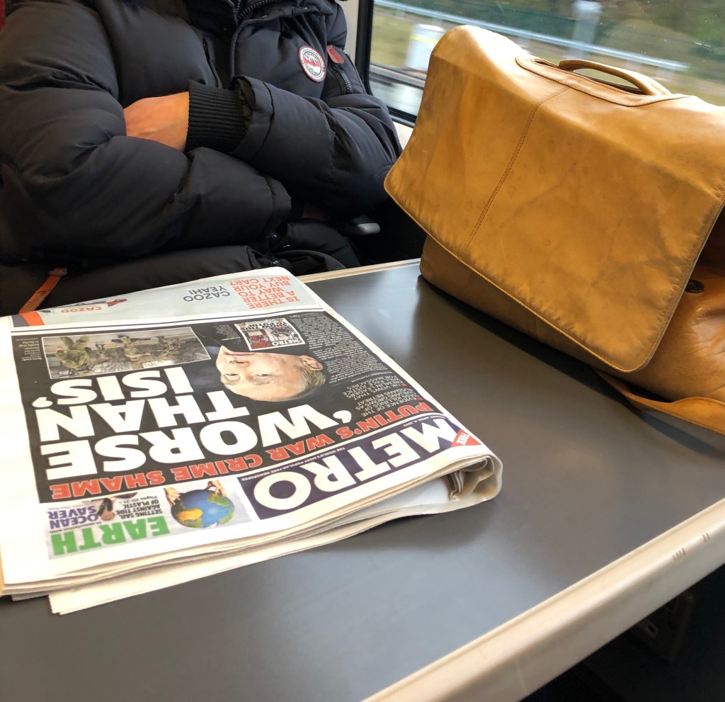 Outside, scrolling text on the outside of the train says “thank you NHS.” Once upon a time people stood in the streets clapping and banging on pots once a week to say thank you. Was it on Thursdays?