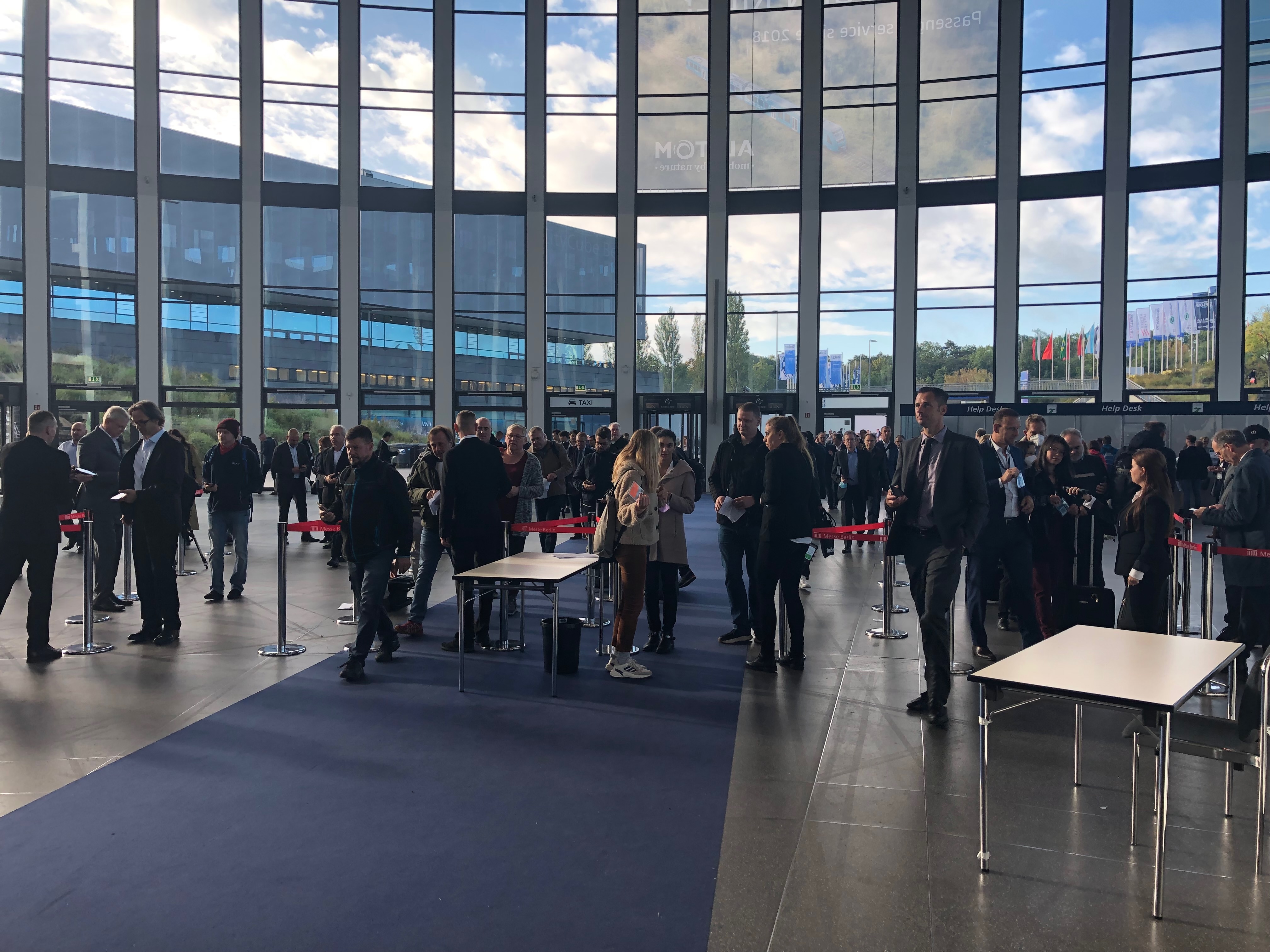 At the fair a first pass through the halls is almost overwhelming. There are so many stands and people. Everyone is there to pitch, to put their best foot forward. There’s excitement in the air. Some stands have coffee bars, some bars have baristas. The exhibitor staff are buzzing with nervous energy, you can sense the adrenaline. I get lost. There are stands focusing on train interiors, bits and pieces of fabric, fire-proofing. There’s a section focused on seating: chairs for drivers, passenger seats. There’s a lot of stuff around data. “Get your data into shape for passenger flow management,” suggests the marketing material for a particular one-man stand.