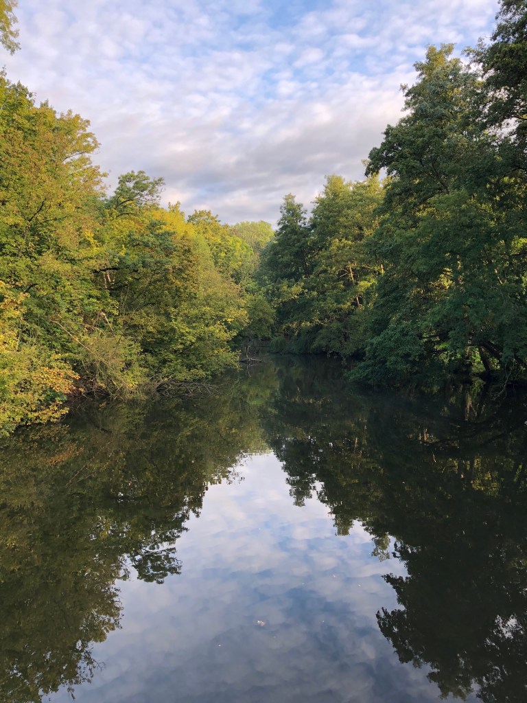 There’s more space here than in England. There are more platforms, the platforms are constructed from solid material. The air feels fresher, cooler. Bigger trees line the track. Milder graffiti lines the inside of modern overpasses (more concrete, less brick) that the train passes under.